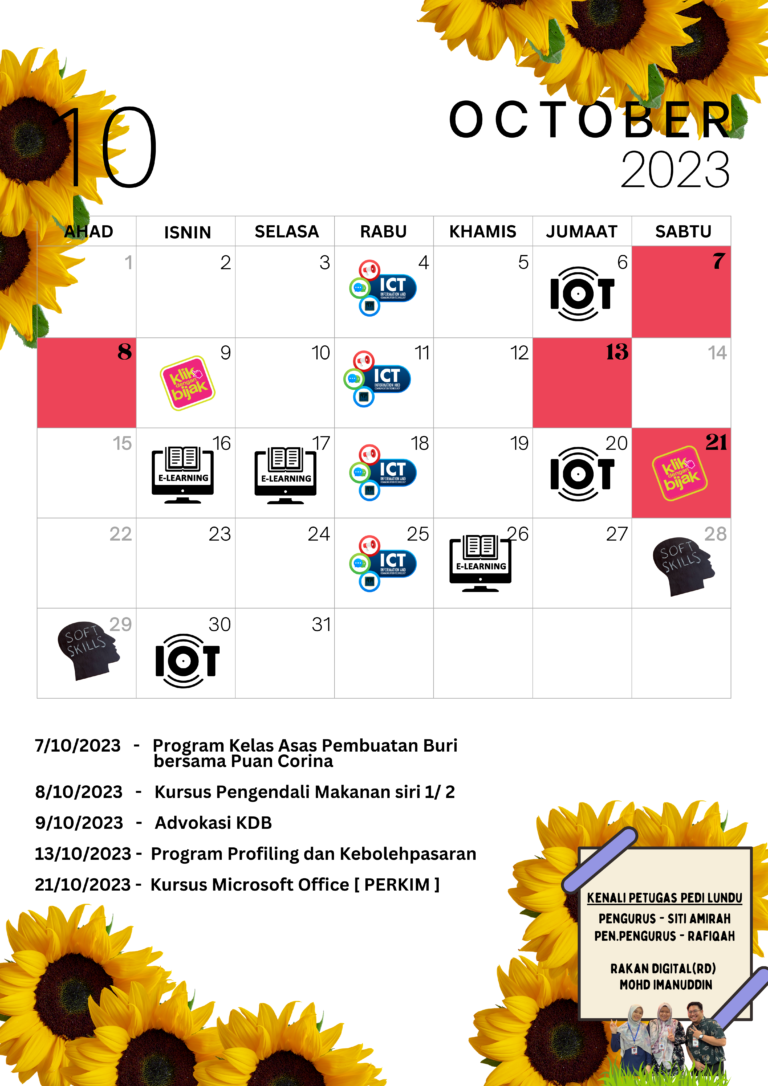Tarikh : 21 Oktober2023 Masa : 9:30 Pagi – 3:00 Petang Lokasi : PEDi Kg.Pandan Peserta : 9 Orang Tujuan : Antara kelas dijalankan ialah Kelas Asas ICT iaitu, Microsoft Word, Power-point & Excel. Tujuan kelas ini diadakan […]